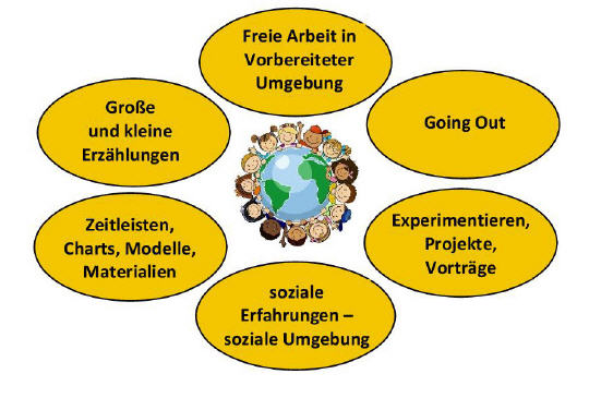 Sie entspricht den Entwicklungsbedürfnissen der Kinder dieses Alters, indem sie ihnen ermöglicht, die vielfältigen Zusammenhänge des Universums und der Welt zu erfahren und durch eigenes Tun zu ergründen.